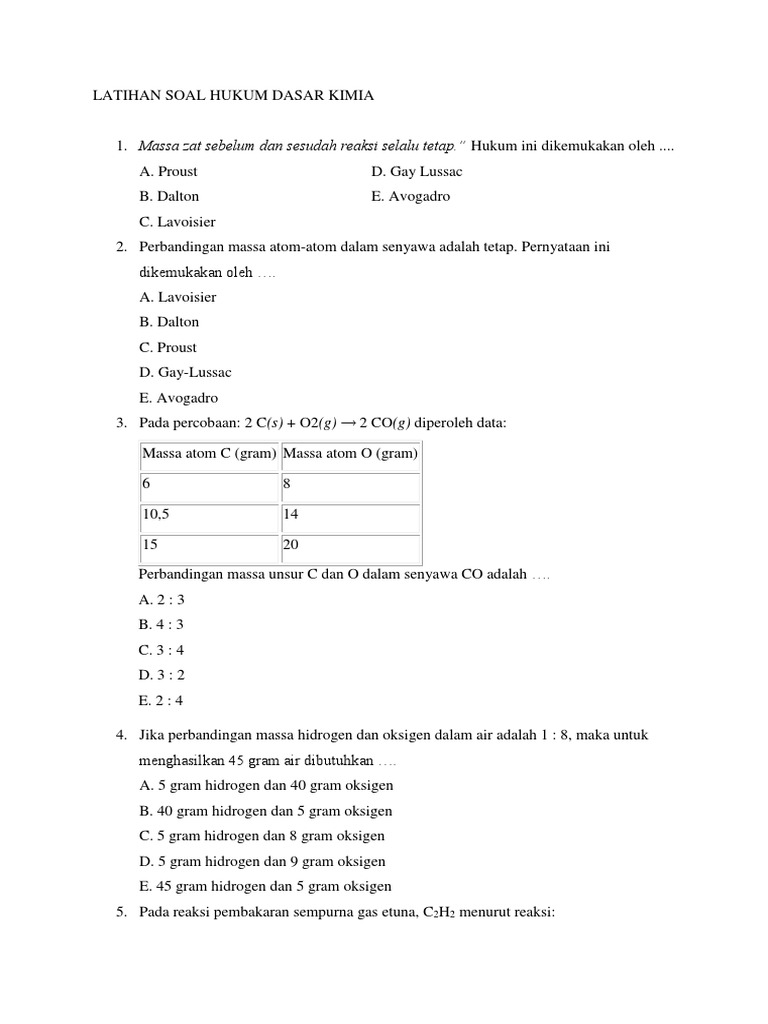 Latihan Soal Hukum Dasar Kimia Dan Jawaban