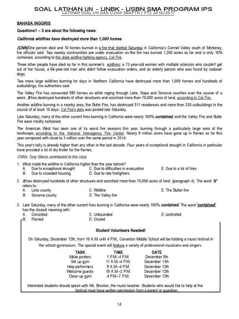 Soal Paket B Usbn Bahasa Inggris Kelas Xii Sma Ma Smk Beserta Jawabannya Ambarisna